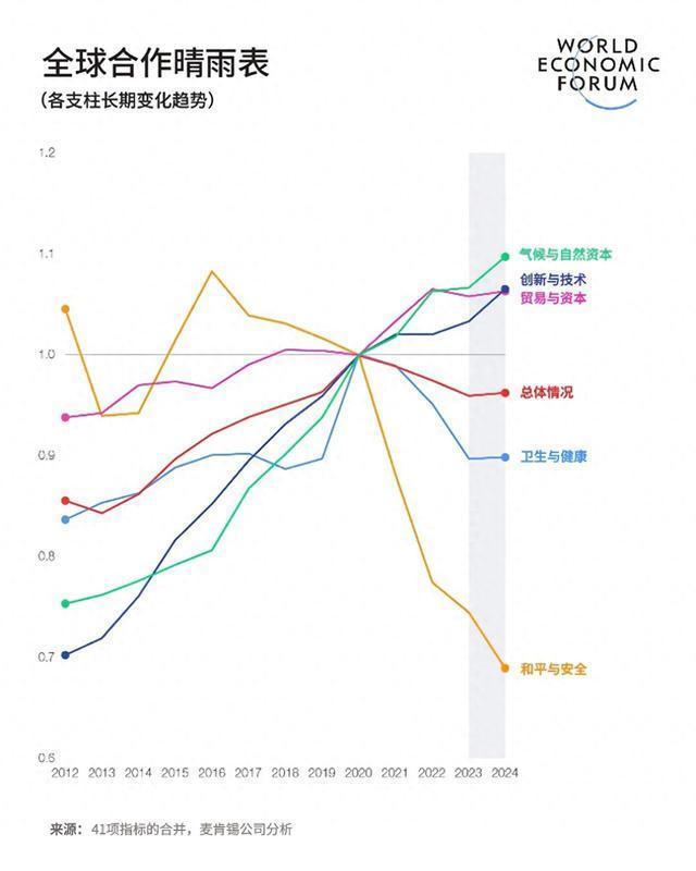 《全球合作晴雨表》采用41项指标评估五大支柱贸易与资本、创新与技术、气候与自然资本、卫生与健康、和平与安全的全球合作状况。